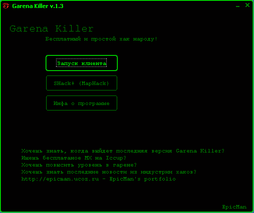 ![]() Garena - это клиент позволяющий играть в Dota и другие карты к War Craft, а также и другие популярные игры настраивая их таким образом, что игроки находящиеся в разных точках планеты могут видеть друг друга в локальной сети. Это дает пользователям интернета организовывать из своих персональных машин подобие игрового клуба, так как программа организована в виде "комнат" распределенных как по странам так и по различным играм, а в сочетании с программами аудио и видео связи Гарена стала уникальным бесплатным продуктом дающим возможность развлекаться, общаться и находить друзей разрушая последние границы в виде простоты и доступности к Вашим друзьям - позволяя находить союзников и сражаться повышая свой игровой опыт проще чем это можно было представить. Совет: Если Вы не хотите быть обманутым (это часто встречается в сети), сохранить свой аккаунт, не передавайте свои регистрационные данные ненадежными способами или недовершенным лицам, помните - ЧТО ДОВЕРЯТЬ СВОЕМУ КОМПЬЮТЕРУ МОЖНО ТОЛЬКО ПОЛЬЗУЯСЬПРОВЕРЕННЫМ АНТИВИРУСНЫМ ПРОГРАММАМ, поверьте защита не бывает лишней, а осторожность должна быть на высоте. |